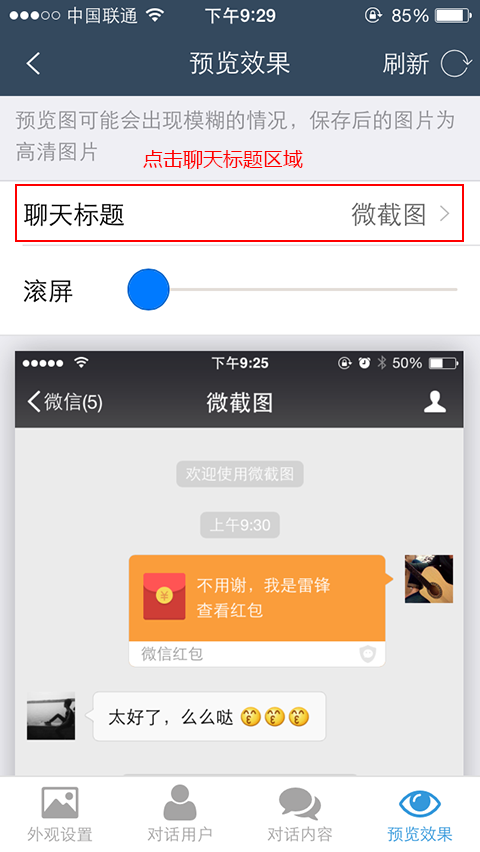 马上下载微截图试试微信对话 - 如何设置聊天标题功能,支持苹果ios,安卓Android