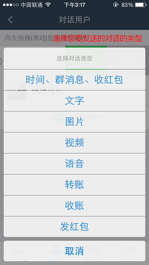 在弹出的菜单中,选择你要发的对话类型