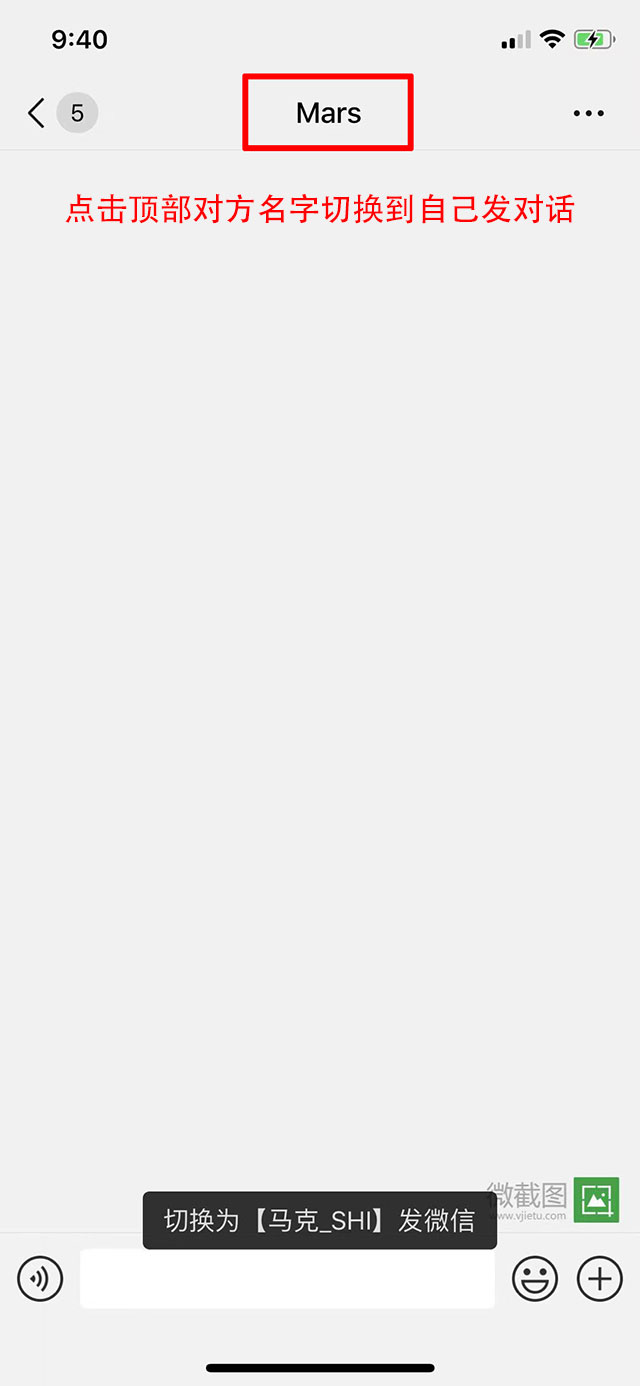6.我们返回微信对话聊天页面,点击顶部对方名字切换到自己发对话